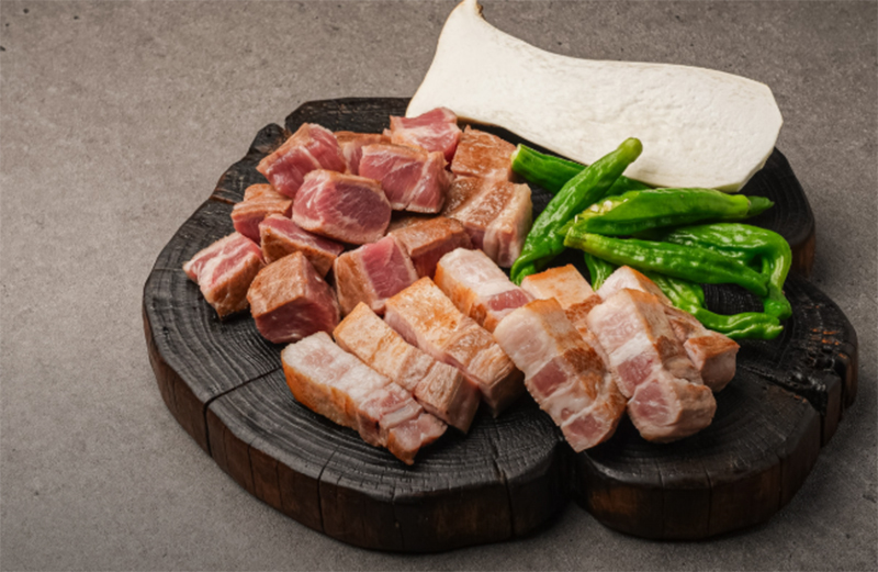 이곳 돼지고기는 신선하고 도톰하며, 구워진 고기를 먹으면 풍미가 가득 베인다고 해요. 삼겹살은 부드러우면서 살살 녹는다고 하는데요. 보기에도 맛있어 보이더군요.
